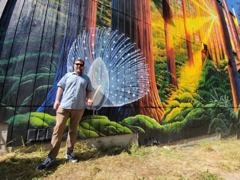 “What Yeshe did with the vision of the memorial is nothing less than spectacular. He captured the awe of the redwoods and Albert’s presence beautifully. And the location couldn’t have been more perfect. The 2024 BCBA Board would like to thank every person who donated, who honked their horn as they drove by while Yeshe painted, and who stopped to tell us their memories of Albert. The mural is a perfect example of community supporting community. The mural will serve as a reminder to us of all that Albert was to us – a symbol of the strength, unity, grace and resilience necessary for a community to thrive. Thank you, Albert. And thank you to the amazing community of Boulder Creek,” Karen said.