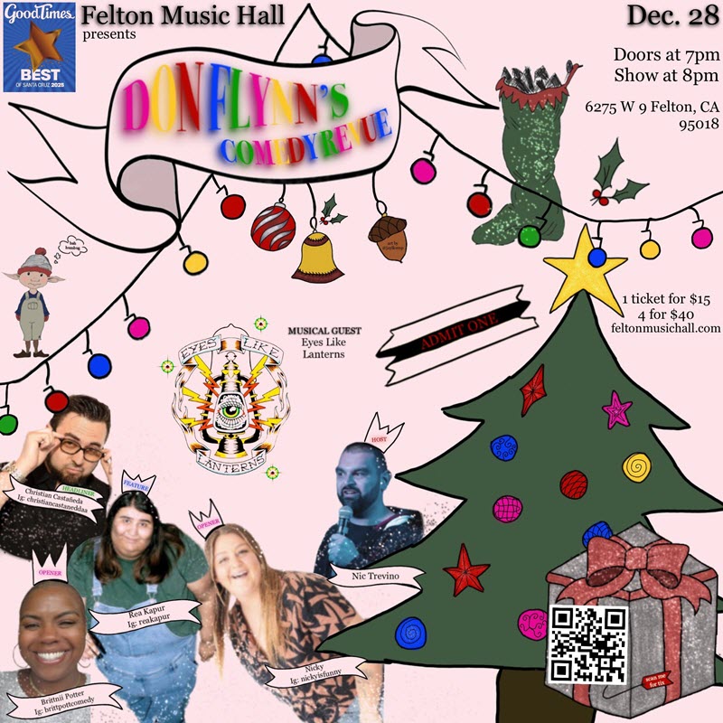 🎶 A comprehensive listing of live music in the Santa Cruz Mountains & Santa Cruz County! Here’s the roundup of concerts and entertainment for the weekend of Friday, December 26 through Sunday, December 28, 2025! Check out the “Hot Ticket Alert” and “New Year’s Eve” sneak peek so you can snap up your tix before the rush! Enjoy all there is to do in Santa Cruz County! 🎶🍷 🍺🎻💃